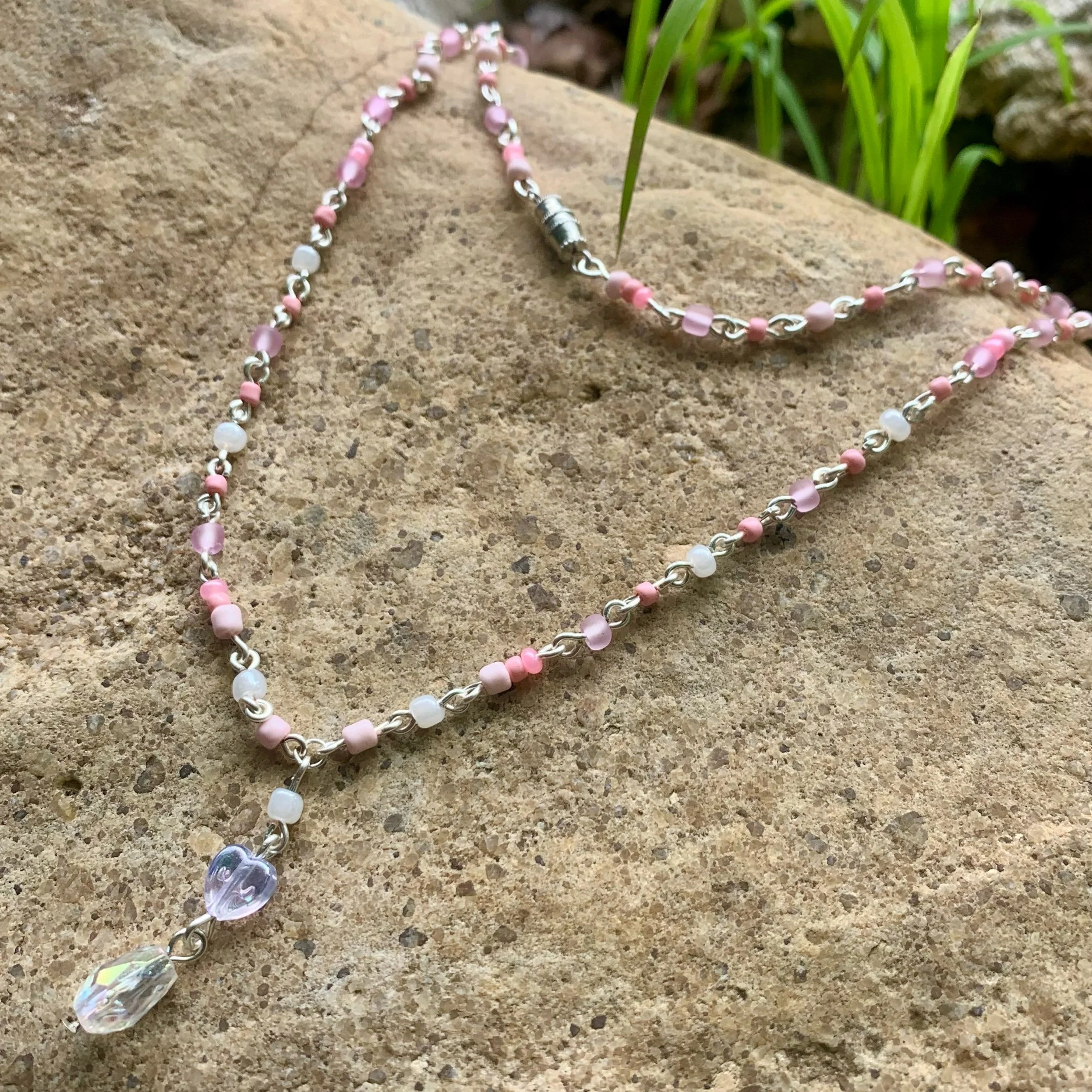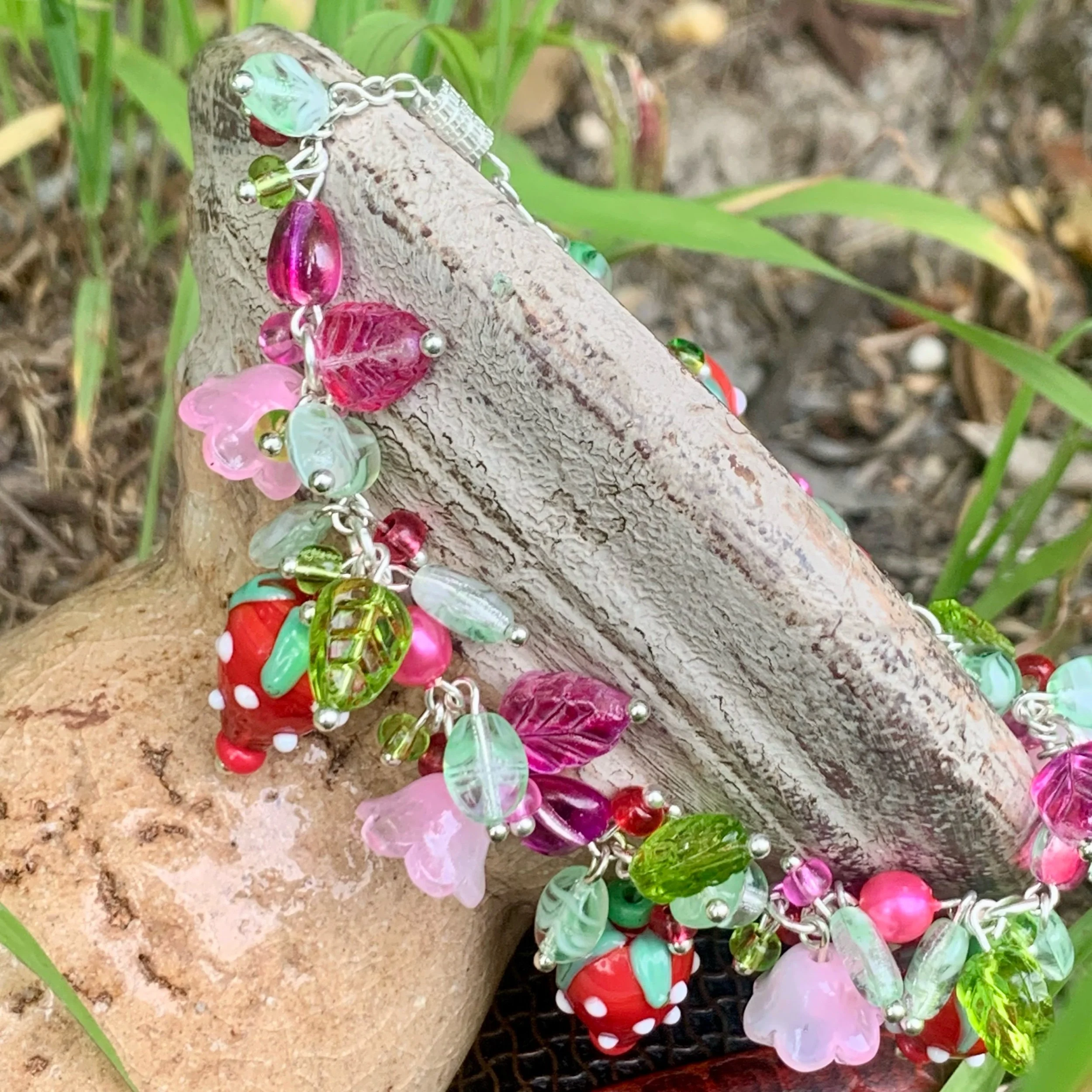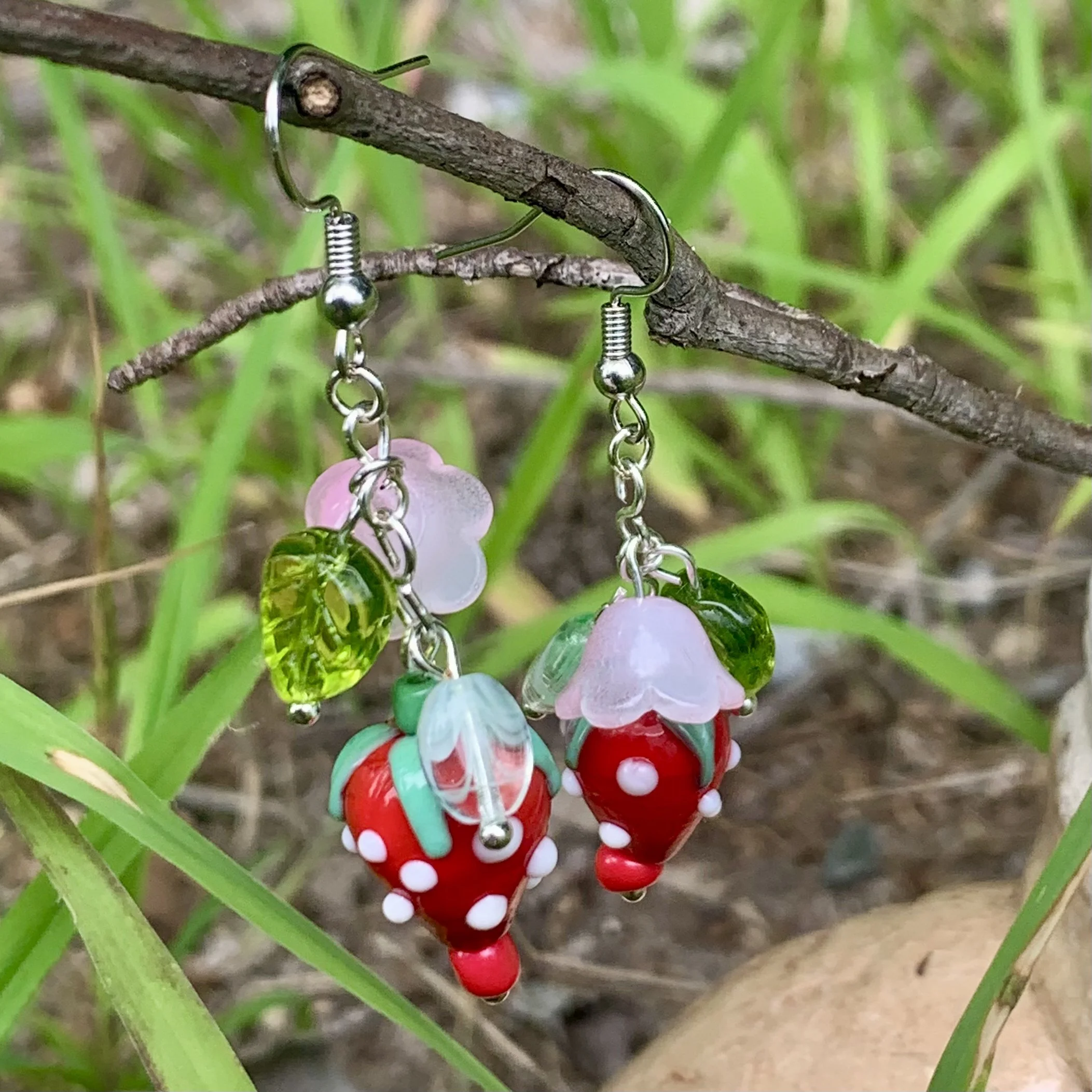 Stainless steel, Czech glass, and handmade strawberry beads. Teleporting you into a strawberry field of yesteryear.